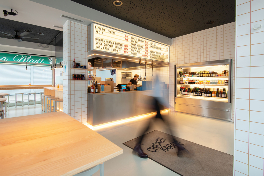 Im Herzen des Stuwerviertels, direkt am traditionsreichen Vorgartenmarkt im 2. Wiener Gemeindebezirk, ist das neue Mochi-Lokal „Chicken Karate“ entstanden. Seit seiner Anlage im Jahr 1912 zeichnet sich der Markt durch seine charakteristischen Ladenzeilen aus, die heute eine lebendige Mischung aus klassischen Marktständen und zeitgenössischer Gastronomie bilden und eine besondere Atmosphäre urbaner Dichte erzeugen.